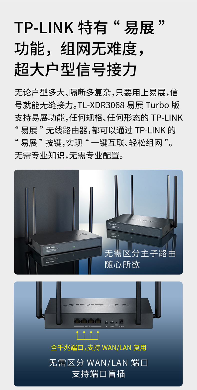 TP-LINK TL-XDR3068易展Turbo版AX3000双频千兆WiFi6企业无线路由