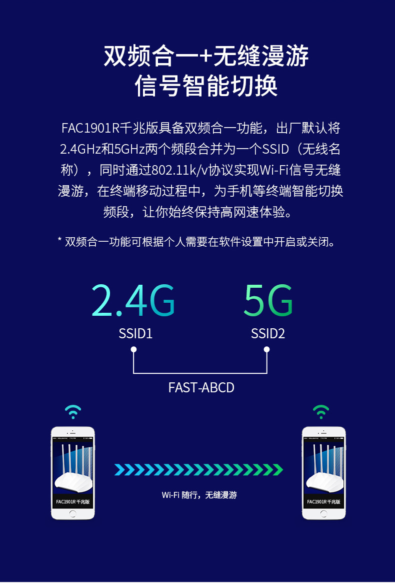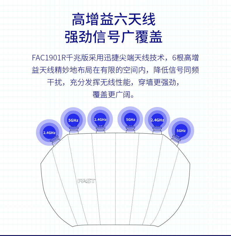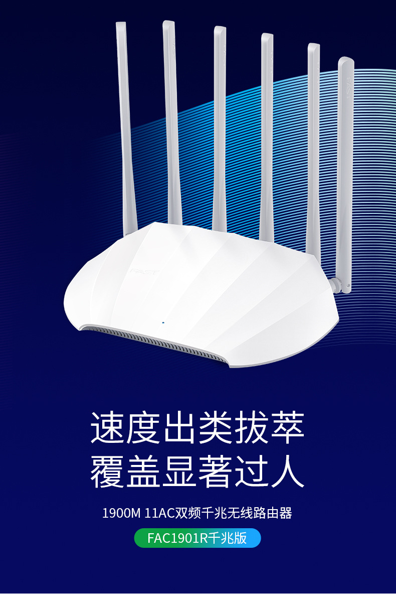 FAST迅捷FAC1901R家用MESH穿墙5G无线WIFI千兆端口版AC1900路由器