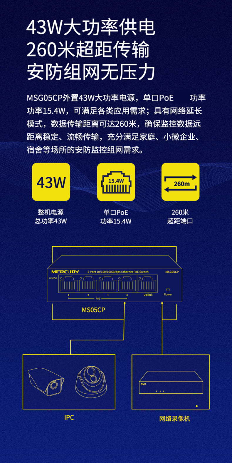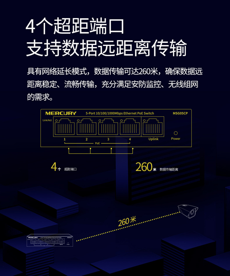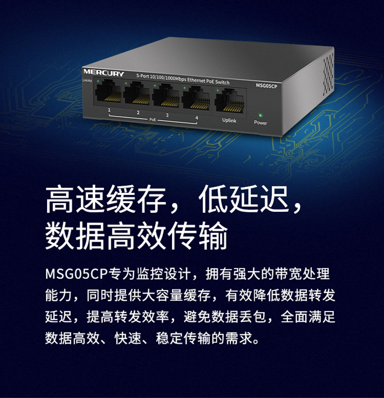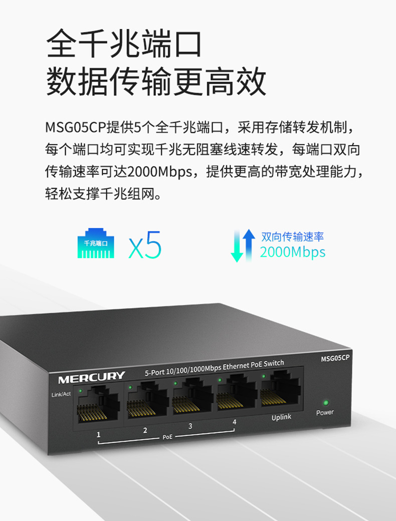 水星MSG05CP 5口全千兆PoE供电交换机安防监控4口POE供电模块