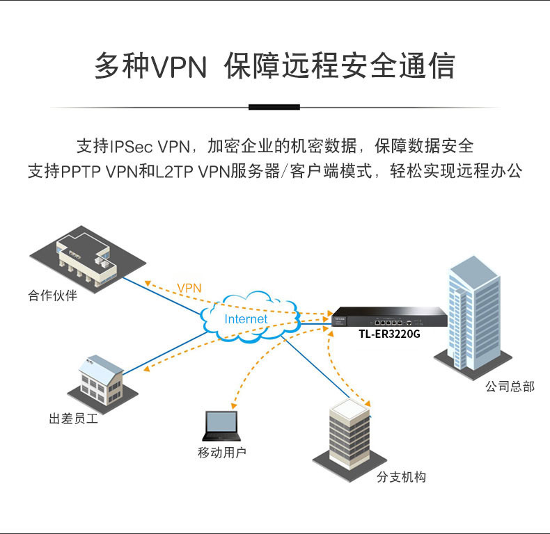TP-LinK多WAN口双核TL-ER3220G企业级VPN全千兆有线路由器AP管理