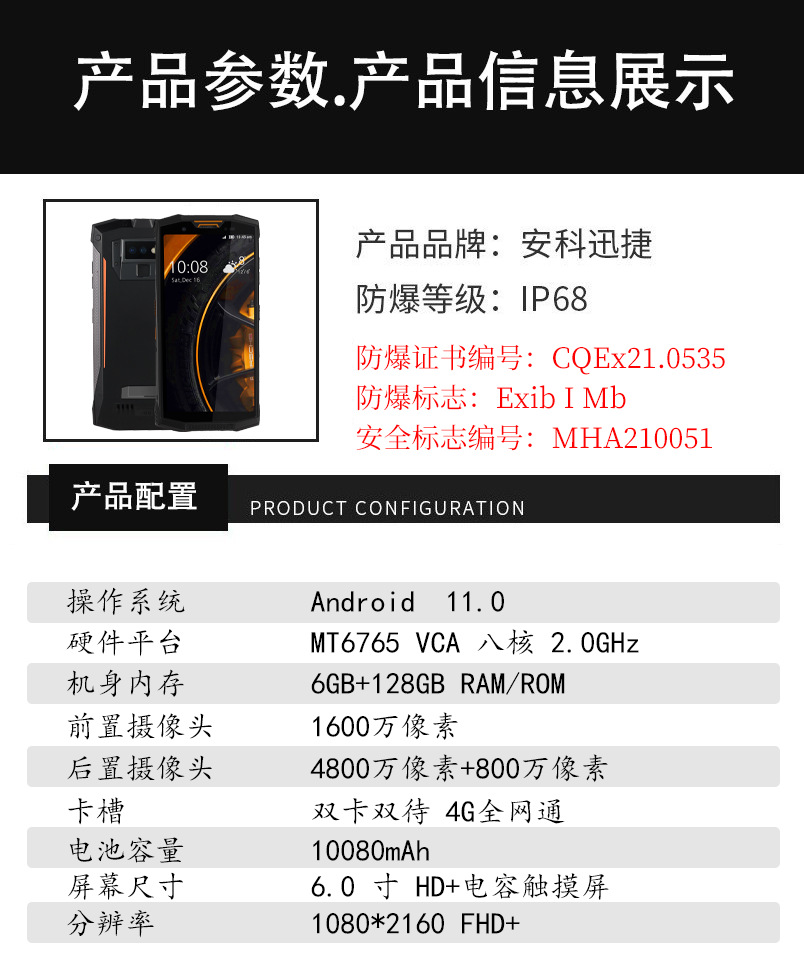 安科迅捷KTW270矿用防爆手机 本安型防爆手机 全网通防爆手机终端