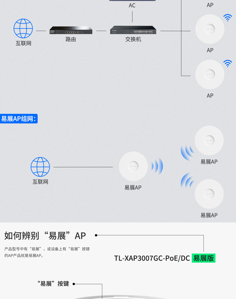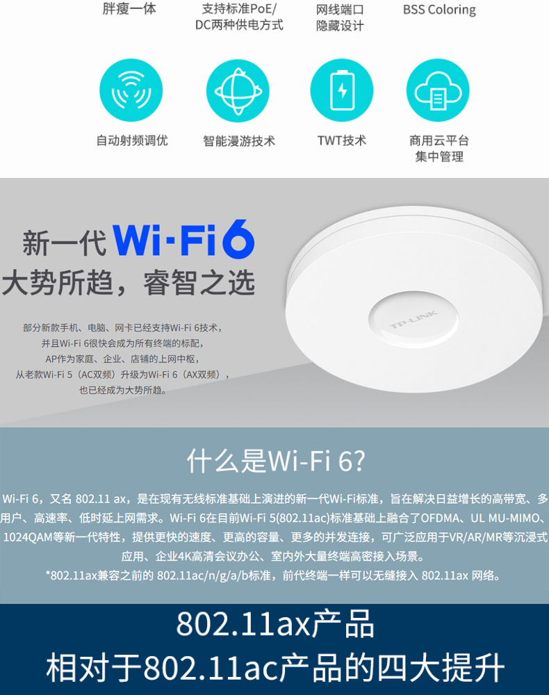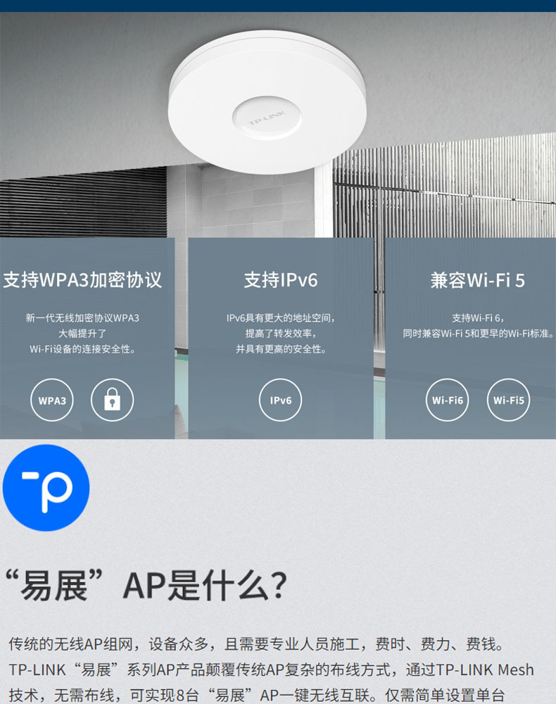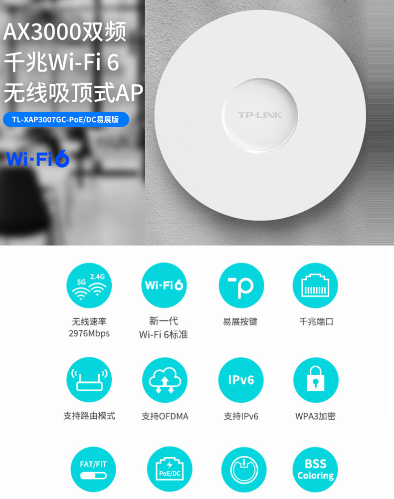 TP-LINK TL-XAP3007GC-PoE/DC 易展版wifi6吸顶AP千兆端口无线ap