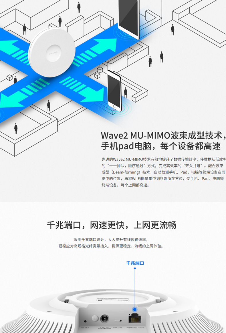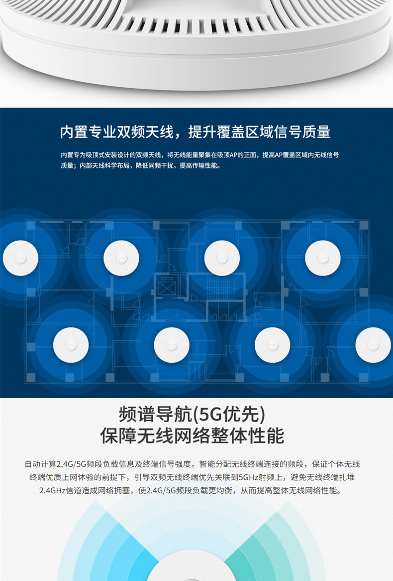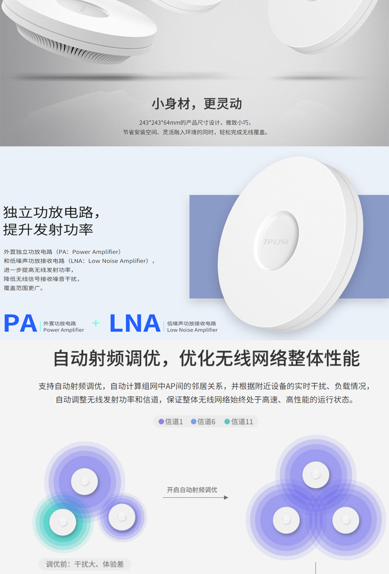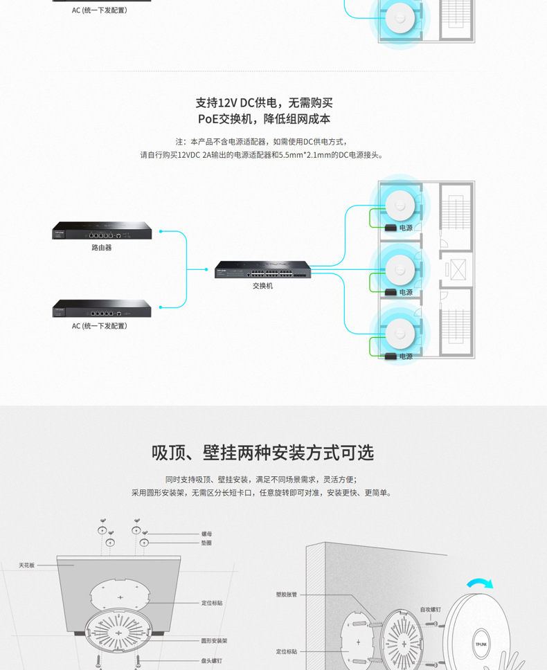 TP-LINK TL-XAP3007GC-PoE/DC 易展版wifi6吸顶AP千兆端口无线ap