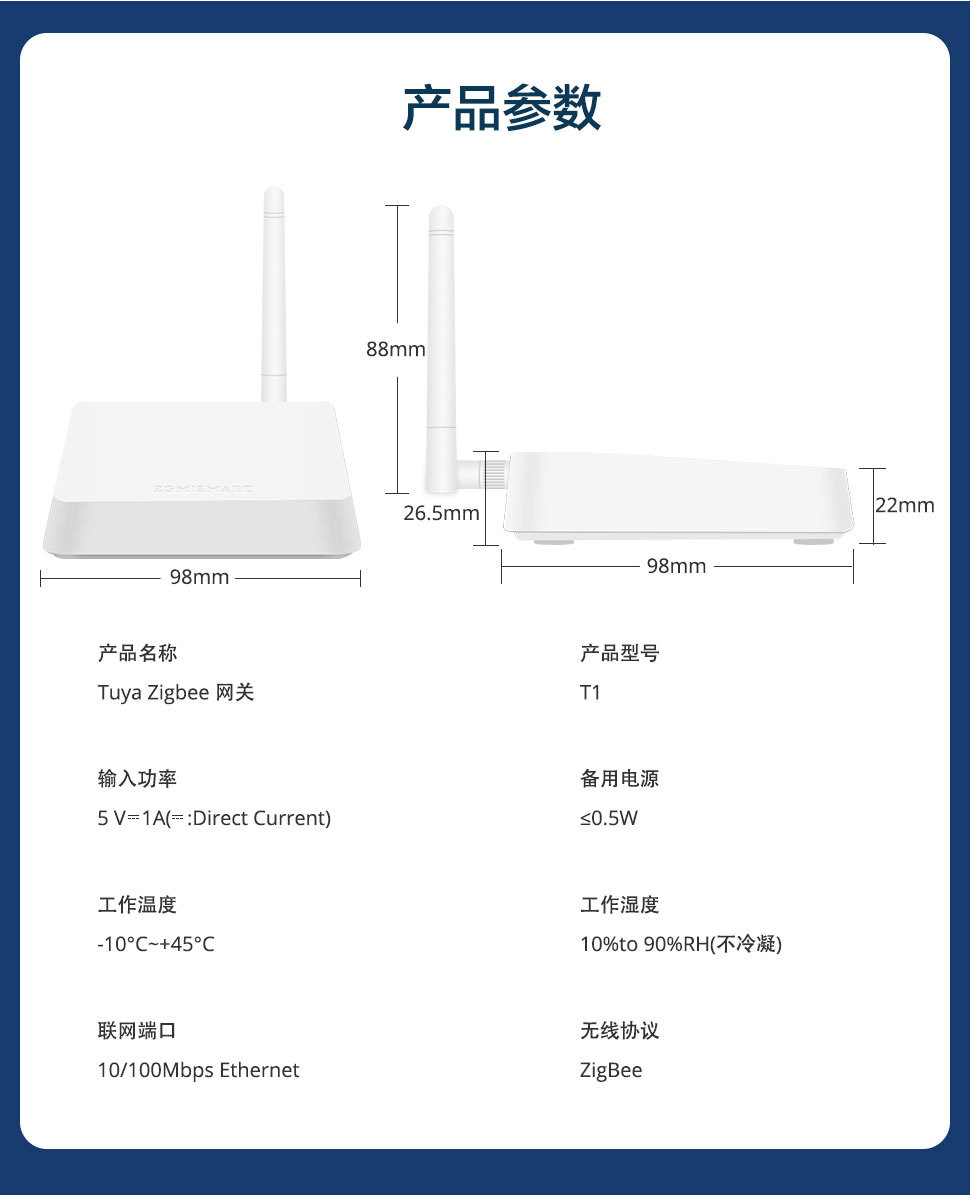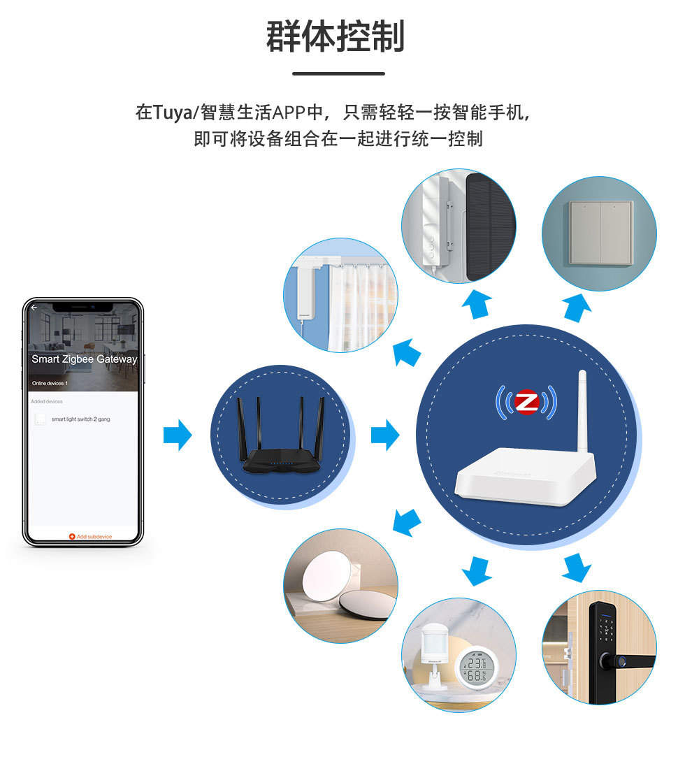 涂鸦zigbee有线网关带天线增强信号智能家居Zigbee家庭控制系统