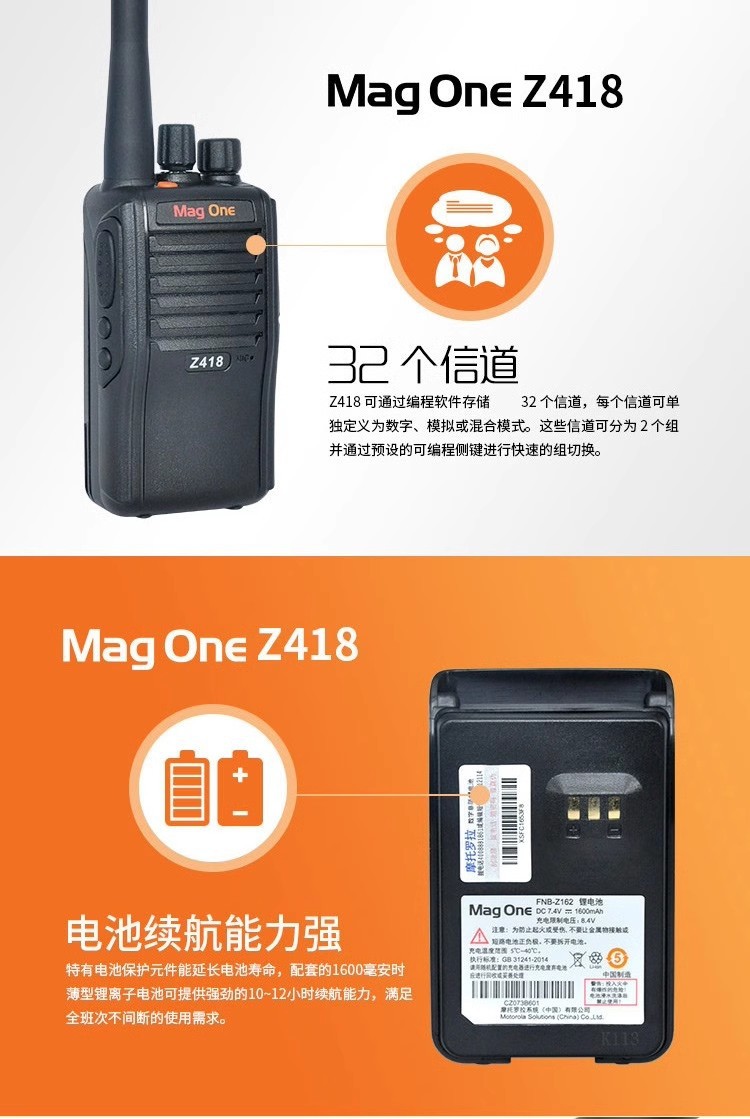 摩托罗拉对讲机Z418 DMR数字手持机双时隙大功率商用手台原装